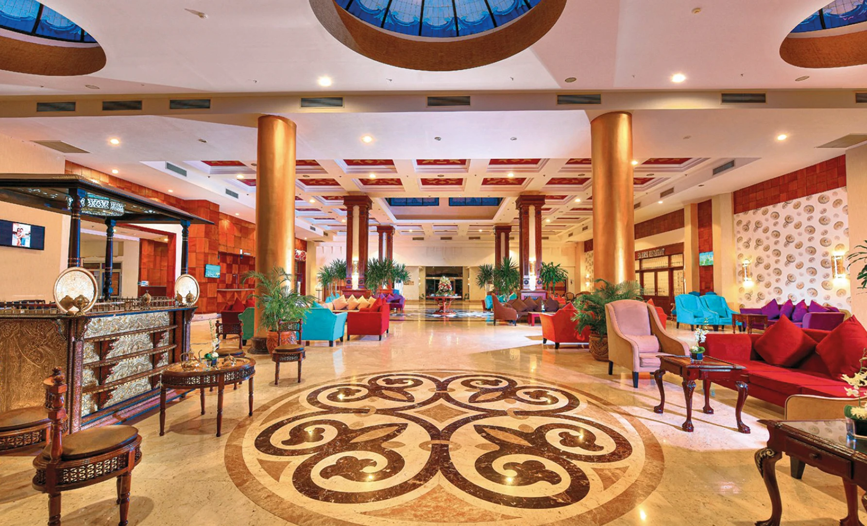 5 ristoranti di cui 2 principali a buffet, Orchid e Panorama e 3 à la carte (a pagamento), uno con cucina italiana Tuscany, un Grill Barbecue e un ristorante con specialità indiane Taj Mahal. La sera l’hotel offre cene a tema con cucina messicana, orientale, indiana e cene di gala che vanno ad arricchire ulteriormente l’offerta gastronomica. 8 bar dislocati all’interno del complesso tra spiaggia, piscina, aquapark e lobby (aperto h24, a pagamento). Coffee shop Pasha a pagamento.